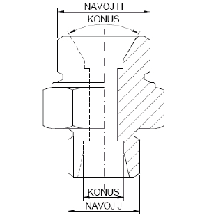 | 31678 | 1/2-36 - NAVOJ H 1/2" / KONUS 60˚ - OK 41 - NAVOJ J M36X2 / KONUS 25S | |
